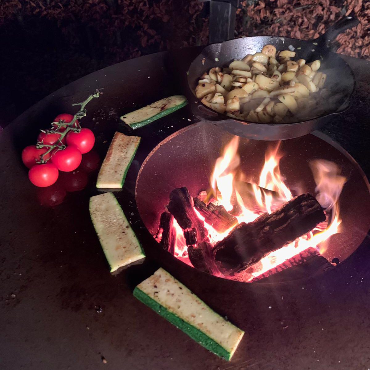 Daarnaast is het ook nog eens heerlijk warm om naast te staan door het vuur wat je binnenin stookt!